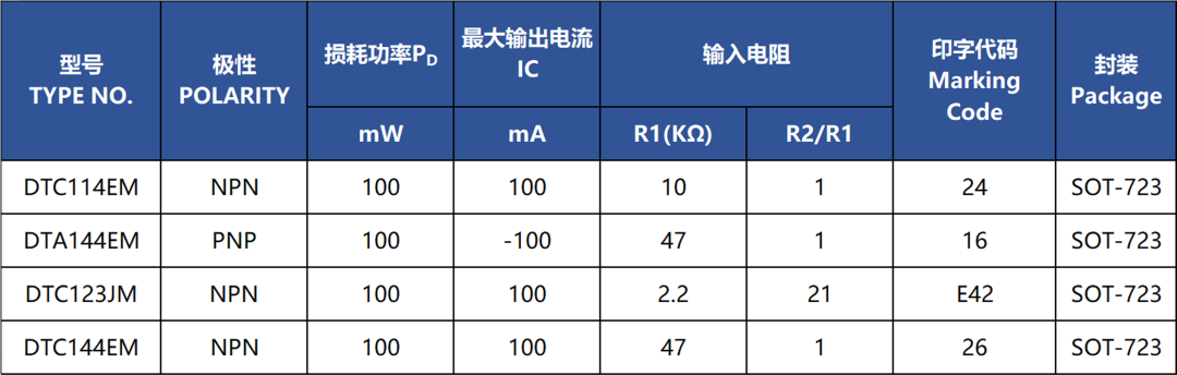 SOT-723新品可封装开关管、普通三极管及数字三极管等系列产品。