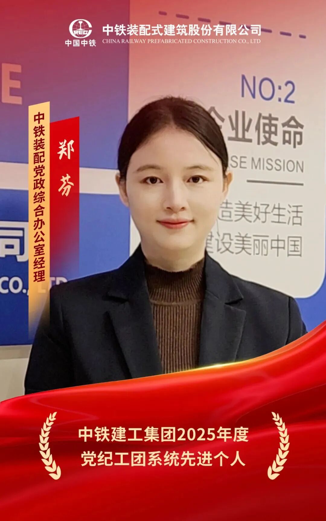 在公司党委领导下,郑芬同志立足实际精准施策,助力混改企业构建党建工作新体系,为企业高质量发展筑牢了红色堡垒。她牵头中铁装配“总包、钢构、建材、集成”4大业务品牌形象宣传,建立通讯员队伍和宣传机制,策划各类党建文化活动,上报信息简报近40篇,其中16篇被中办、国办、股份公司采用,多角度展现了企业改革发展成果和良好品牌形象。曾荣获中国中铁报“优秀通讯员”、中铁建工集团“优秀党务工作者”“党建品牌创意大赛二等奖”“党建品牌创意大赛优秀个人贡献奖”、中铁装配“先进个人”等荣誉,展现了过硬的专业素养与巾帼风采。