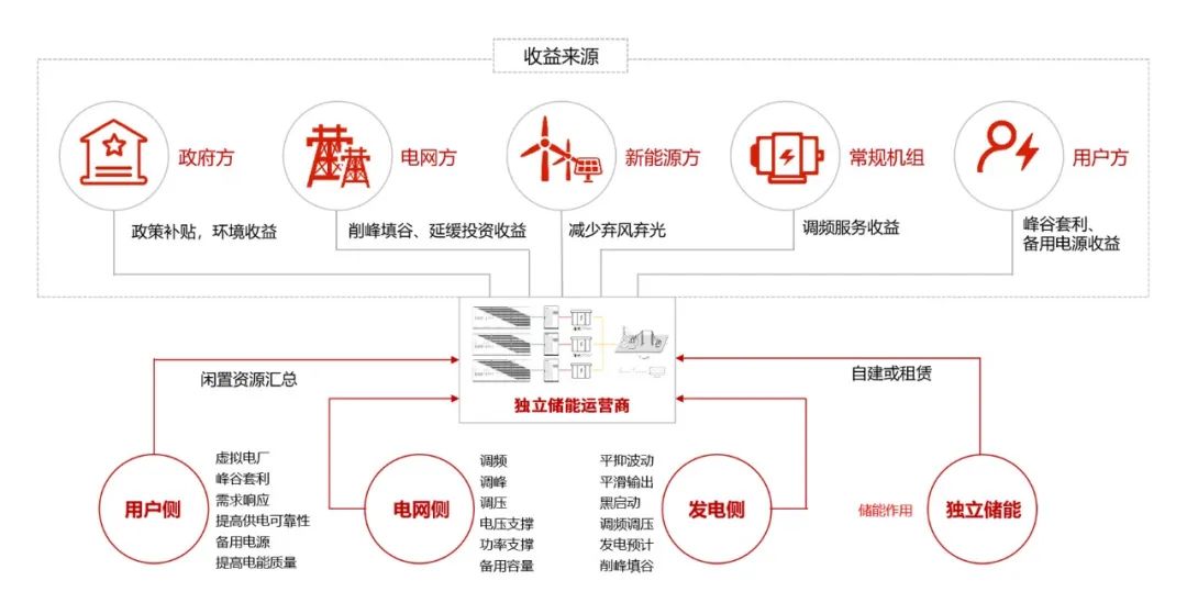 国家政策明确确立储能市场主体地位。第三方投资建设的集中式大型独立储能电站在满足自身需求的同时,还可为其它新能源电站提供服务,有效降低新能源场站弃电量,并通过双边协商、双边竞价及单边调用等模式参与电力交易,进入电力辅助服务市场等。