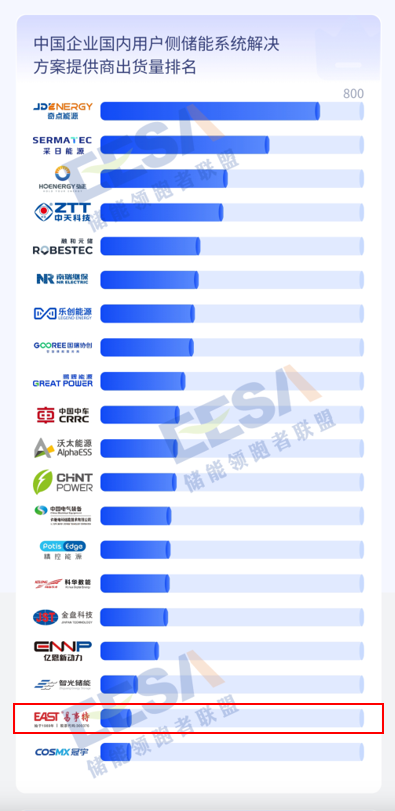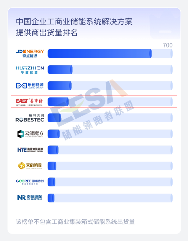 会上,储能领跑者联盟(EESA)还权威发布了“2023年度中国储能企业全球出货量排名”,易事特集团荣登多项行业榜单,包括2023年中国企业国内交流侧储能系统解决方案提供商出货量TOP20、中国企业国内用户侧储能系统解决方案提供商出货量TOP20、中国企业工商业储能系统解决方案提供商出货量TOP10。