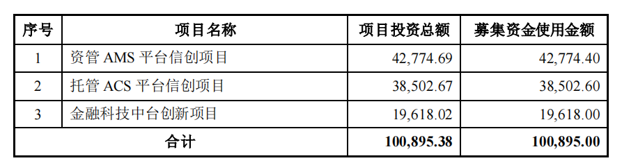 昨日晚间,赢时胜披露了《2022年度向特定对象发行股票预案》。公司本次向特定对象发行股票募集资金总额不超过100,895.00万元(含本数),扣除发行费用后用于以下募集资金投资项目:资管AMS平台信创项目、托管ACS平台信创项目、金融科技中台创新项目。