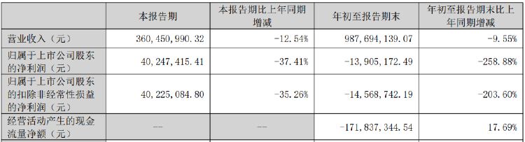 这份三季报“成绩单”延续了上半年公司营收下滑、净利亏损的业绩窘境。