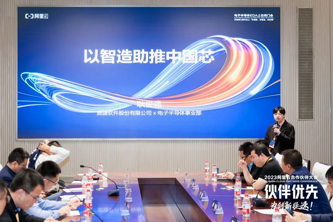 会上,鼎捷软件副总裁叶贤盛参加了与阿里云联合的数字化解决方案发布仪式,并在随后的电子半导体EDA上云闭门会上参与了闭门交流。