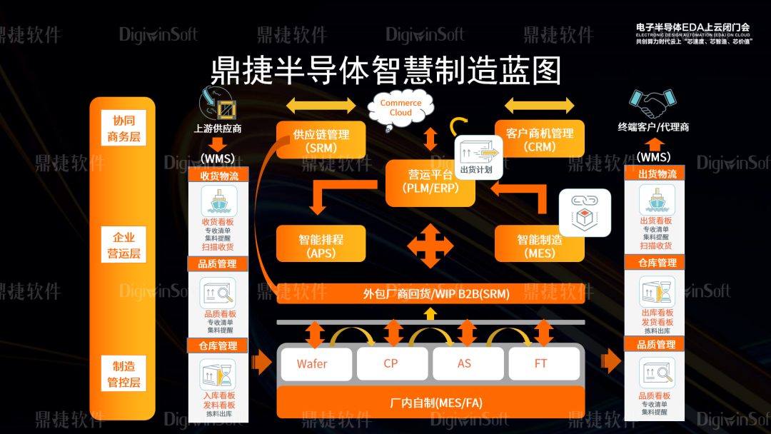 鼎捷软件从协同商务层、企业营运层、制造管控层三大层级出发,赋能半导体行业企业,使合作厂商能实时分享产能生产、库存状况,缩短制造周期时间,更精准进行需求预测。同时还能强化内、外伙伴协同合作,减少生产延迟、零件短缺库存过高及产品质量的管理风险。