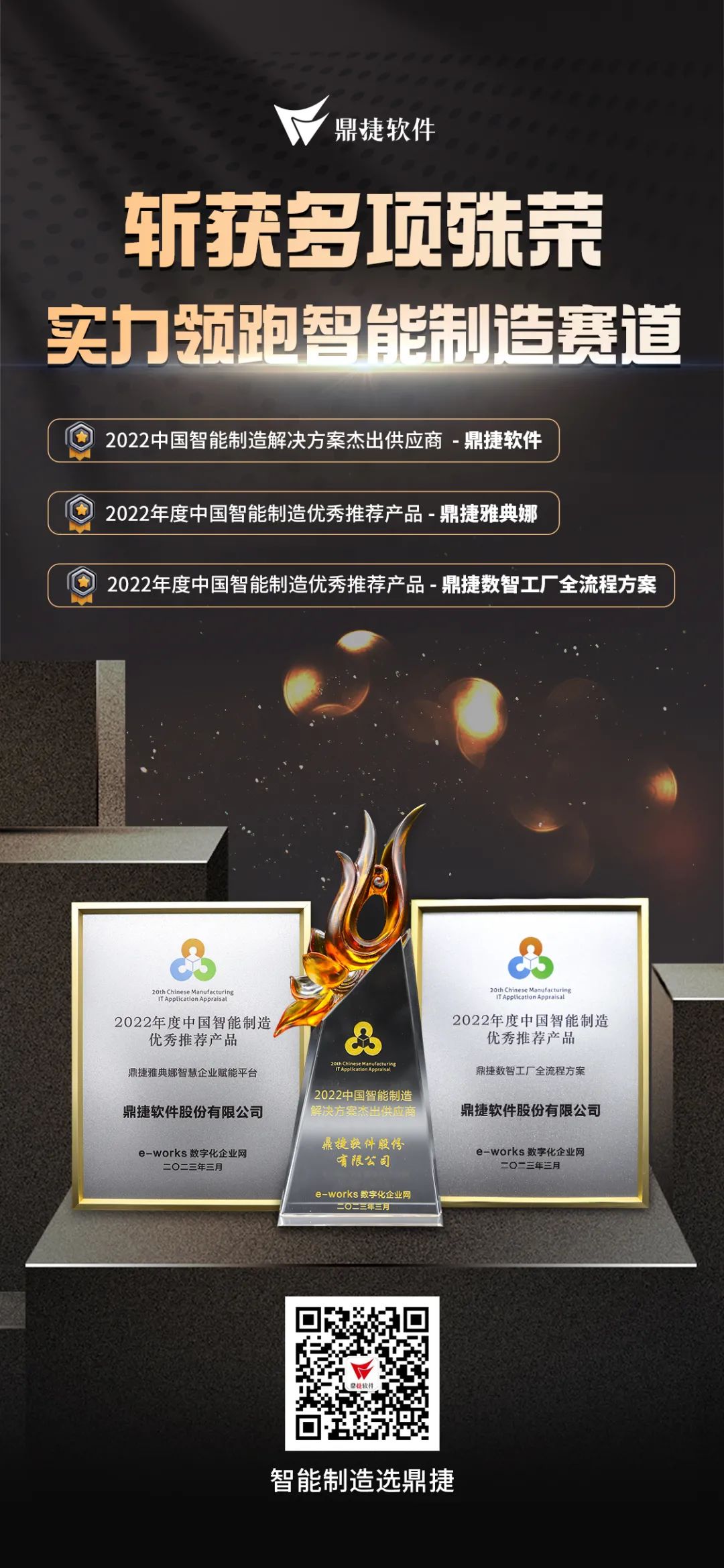 凭借强劲的产品创新研发能力以及在智能制造方案落地实践中的卓越表现,鼎捷软件获评“2022中国智能制造解决方案杰出供应商”,鼎捷雅典娜智慧企业赋能平台、鼎捷数智工厂全流程方案荣获“2022年度中国智能制造优秀推荐产品”。