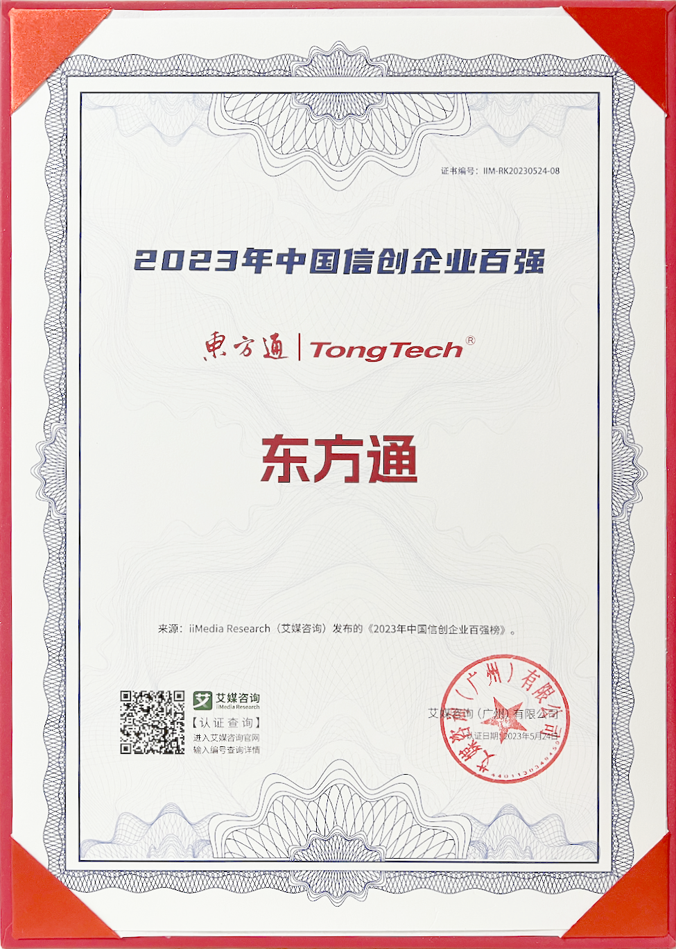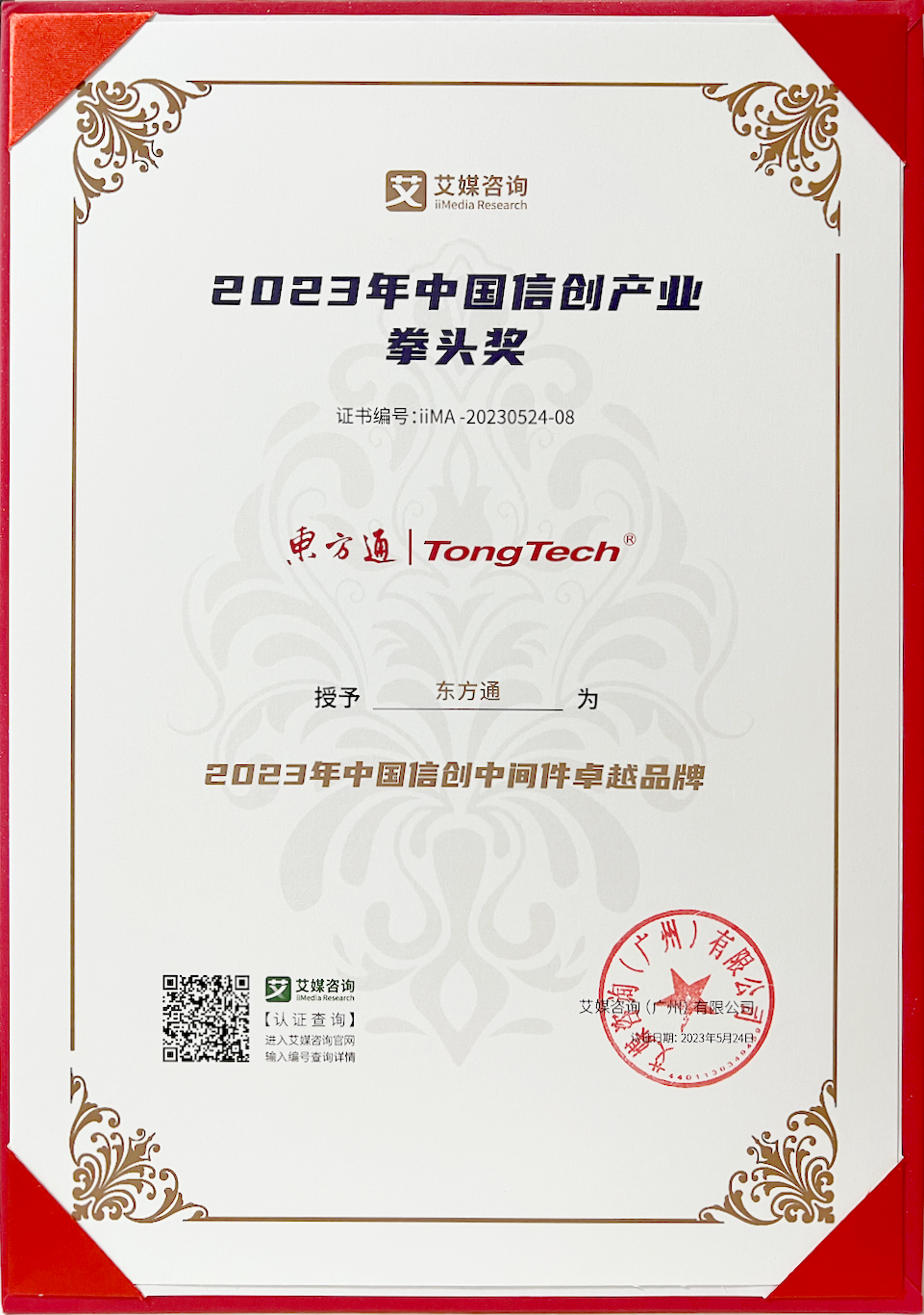 作为入选百强榜单的中间件领导者企业,东方通还荣获了“2023年中国信创中间件卓越品牌”,充分彰显了以东方通为代表的国产中间件在技术创新能力、行业应用潜力、市场竞争力等多维度的突出优势。