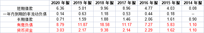 中国网财经记者注意到,溢多利的账面货币资金已经难以覆盖有息债务。可以看到,溢多利的短期借款从2014年的0.08亿元迅速增加到了2018年的9.96亿元,同时,2018年的有息负债达到近年来的顶峰为18.58亿元。需要注意的是,2018年在有息负债大幅增加的同时,溢多利的货币资金也在上升。然而,2019年和2020年,溢多利的账上货币资金便缩水,分别为2.17亿元和3.03亿元,同期的有息负债分别为11.87亿元和8.79亿元。