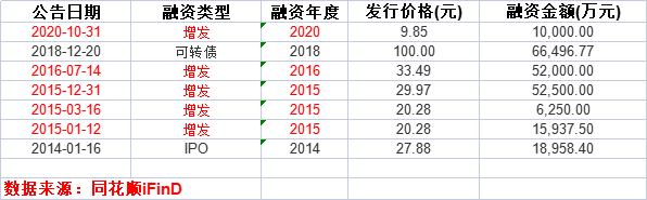 不仅频繁收购,上市第二年,溢多利就开始不断向市场“伸手要钱”。同花顺iFinD显示,从2015-2020年,溢多利累计股权募资达到15.6亿元。