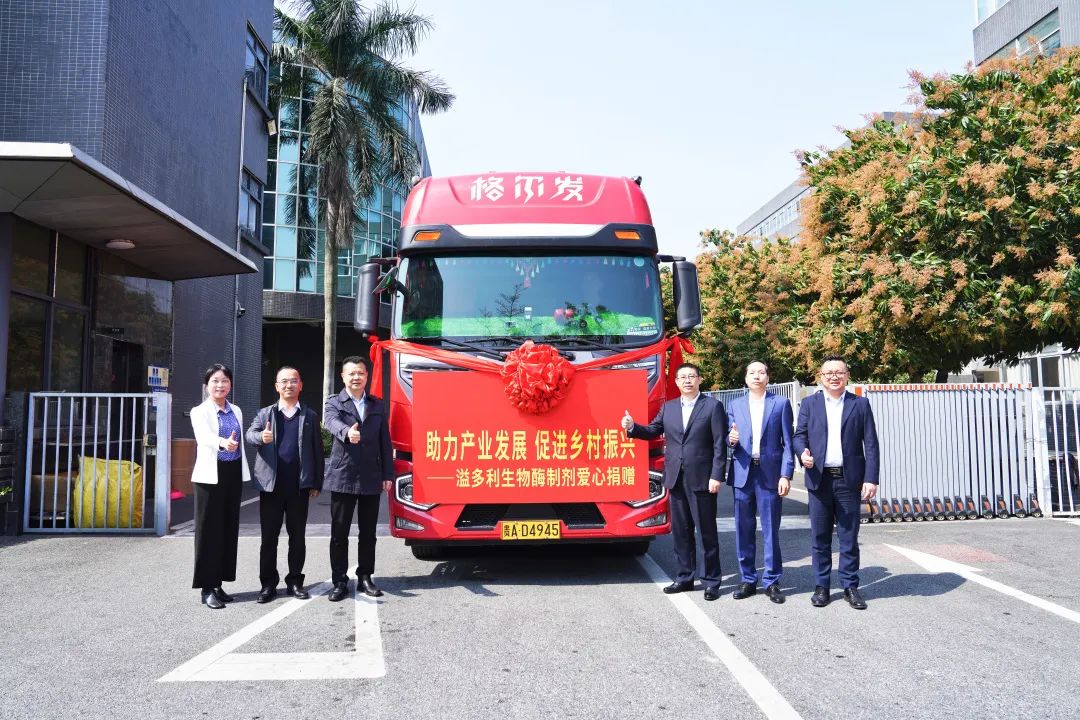 2023年3月1日,“助力产业发展促进乡村振兴——溢多利生物酶制剂爱心捐赠”仪式在溢多利公司总部隆重举行,珠海市香洲区乡村振兴局、香洲区红十字会、香洲区工商联领导与公司周德荣总裁等出席仪式。