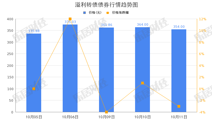 乐居财经 10月12日,“溢利转债”(123018)早盘拉低,截至10:10,跌幅10.67%,报316.23元。总成交量6.02万手,成交额1.98亿元。