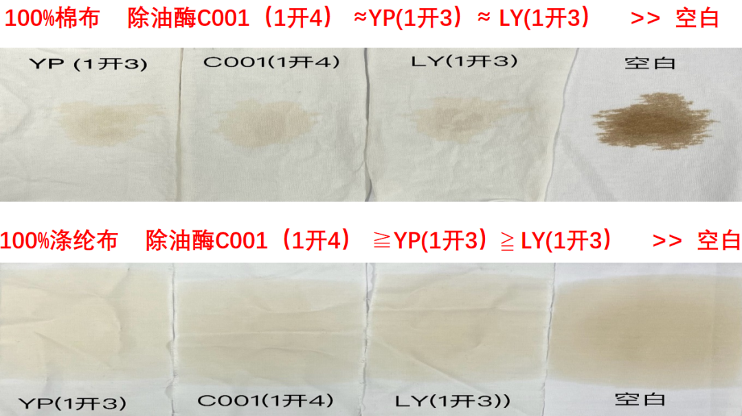 在多项试验中,“除油酶”C001表现出了优异的性能,其效果显著优于市面上的竞品除油剂。以下为试验中的核心发现:
