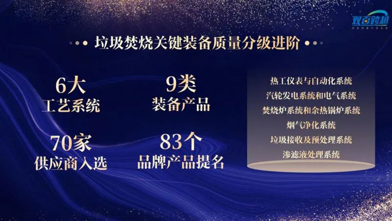 此次名录覆盖垃圾焚烧关键工艺环节,以用户需求为导向,从标准化、智能化、稳定性、节能降耗、售后保障、品牌力等六个维度构建评价体系,经过集团提名和评审比选,最终选出了年度用户提名产品品牌和年度用户推荐产品,共围绕6大关键工艺系统,9个装备产品门类,70家供应商入选,83个品牌产品被提名。