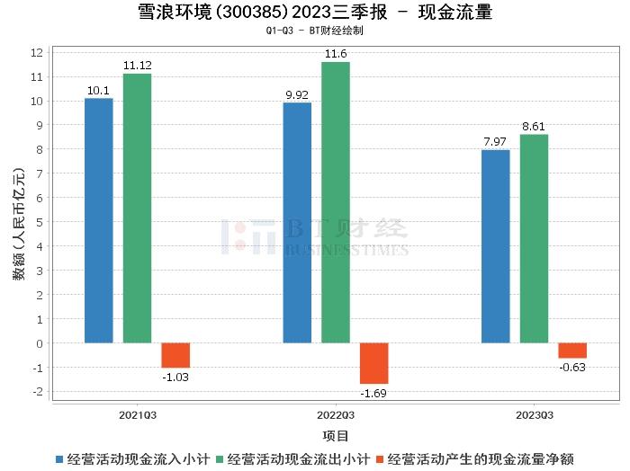在现金流量方面,雪浪环境2023年三季度经营活动产生的现金流入为7.97亿元,较上年同期的9.92亿元有所减少。经营活动产生的现金流出为8.61亿元,较上年同期的11.6亿元减少。经营活动产生的现金流量净额为-6305.59万元,较上年同期的-1.69亿元增加62.64%,主要原因系本期支付货款比同期少。这些数据显示,公司的现金流量管理得当,经营活动的现金流量净额有所改善。
