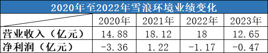 雪浪环境2024年的业绩预告或许能够说明一些问题。2025年1月20日,雪浪环境发布了2024年业绩预告,净利润预计为亏损3.5亿元至4.95亿元,而2023年的净利润为亏损4677.87万元。雪浪环境于2014年上市,2024年是公司上市的第十个年头,但业绩表现却创下最差纪录,此前最高亏损纪录发生于2020年,净利润为亏损3.36亿元。