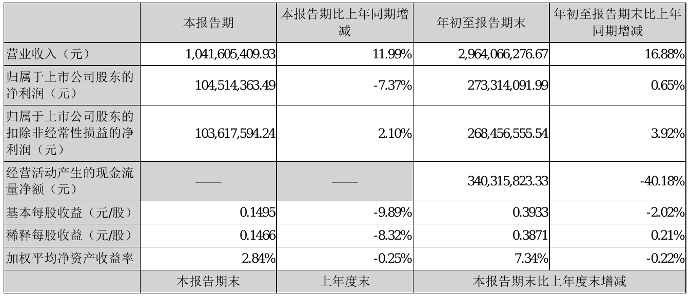 挖贝网10月27日,节能国祯(300388)近日发布2021年前三季度报告,报告期内营业收入2,964,066,276.67元,同比增加16.88%;净利273,314,091.99元,同比净利增加0.65%。