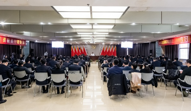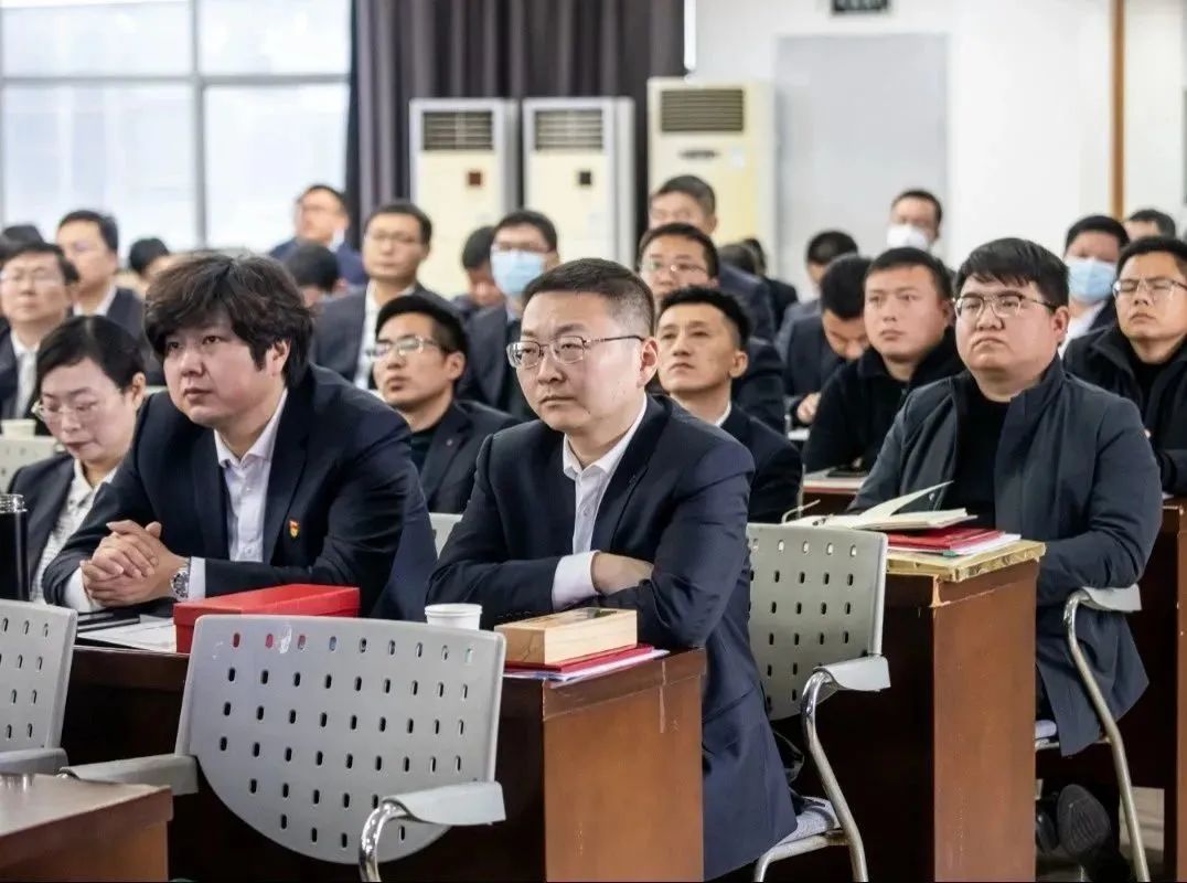 公司领导班子成员、各事业部、职能部门负责人、在肥各基层党支部书记及党员职工群众代表在主会场参会,公司所属单位各级领导班子、党员和基层员工在分会场聆听党课。