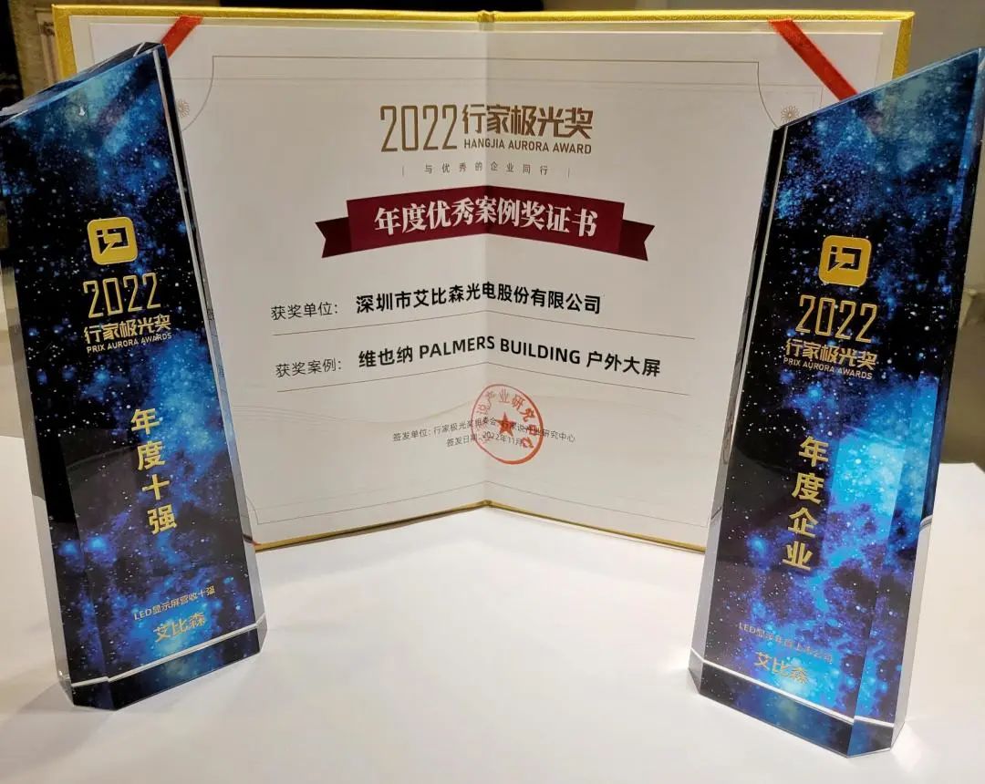11月18日,一年一度的行家说年会暨行家极光奖颁奖典礼在深圳隆重举行,现场揭晓了2022行家极光奖各大奖项的得主。艾比森荣获“LED 显示产业年度上市公司”、“LED 显示屏营收十强”、“年度优秀案例奖”三项大奖,赢得了行业内外的一致认可和高度赞扬。