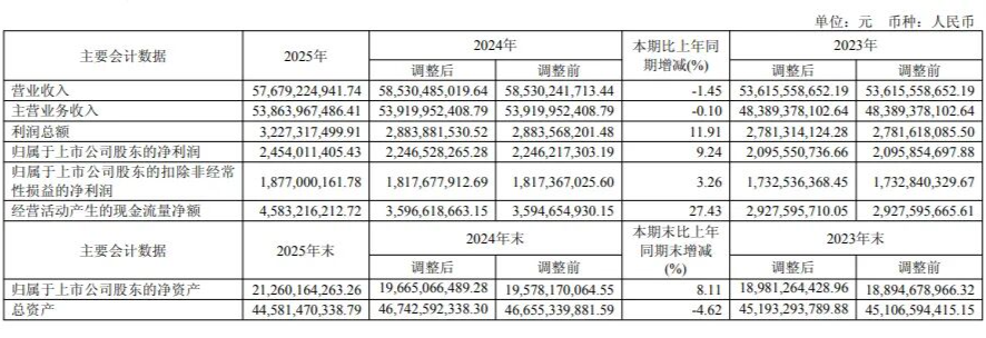 2025年,海信视像实现营业收入576.79亿元,同比下降1.45%;归母净利润24.54亿元,同比增长9.24%。