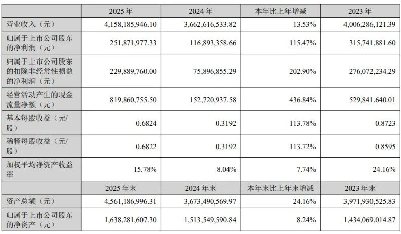 艾比森2025年实现营业收入41.58亿元,同比增长13.53%;归母净利润2.52亿元,同比增长115.47%。报告期内,公司通过一系列战略、战策,持续推动公司业绩健康成长,且整体绩效优于行业平均水平。