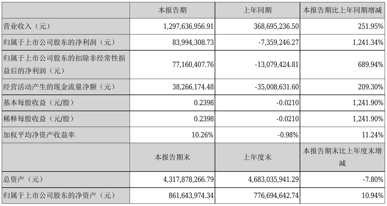 挖贝网8月29日,康跃科技(300391)近日发布2021年半年度报告,报告期内营业收入1,297,636,956.91元,同比增加251.95%;净利83,994,308.73元,同比扭亏为盈。