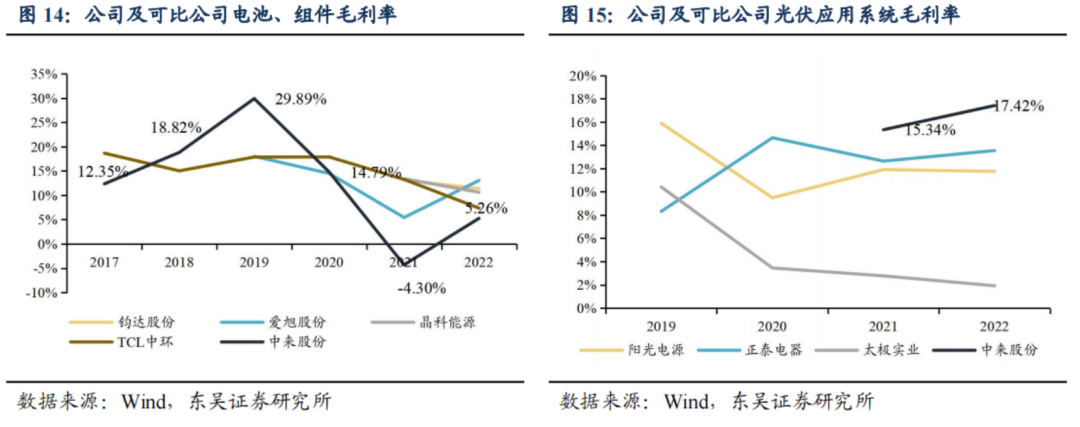从赊销模式到 EPC 模式,资金周转效率不断提升。光伏应用系统的赊销模式指电站所有权移交后,所有者每年用发电收益偿还公司款项,回款周期高达 10-20 年,对于公司来说,有较大的资金压力。而 EPC 模式的付款方式包括按月支付、按进度支付以及竣工后一次结算,虽然会导致毛利率下降,但回款周期大幅缩短。2017 年到 2020 年公司主要采用赊销业务模式,2021 年后转为 EPC 模式,并与国家电力投资集团有限公司下属子公司开展合作,合资设立项目公司,共同开发户用分布式光伏电站业务。公司此举有利于减少资金占用、促进周转效率的提升。