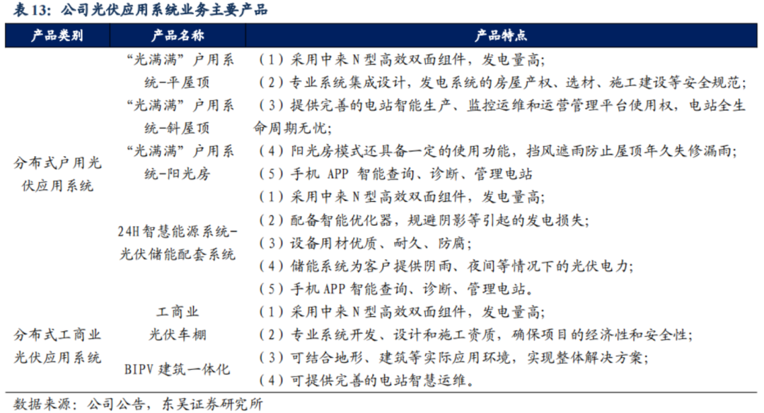 公司光伏应用系统以户用为主,工商业为辅。早在 2016 年,公司就依托自身技术、运营优势,开始探索分布式市场。截至 2023 年 6 月,公司户用分布式业务已覆盖 23 个省、749 个区县,管理和运维的家庭新能源光伏电站近 17 万座;同时,公司也在山西、广东、河南等省积极开拓工商业分布式项目,与大型央国企建立战略合作关系,进一步补充、拓展终端光伏应用场景。
