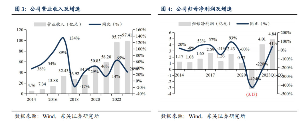 公司营业收入稳定增长。2023Q3 公司营业收入达 39.80 亿元,同比+33.27%;2023Q1-Q3 累计营业收入达 97.41 亿元,同比+27.77%。