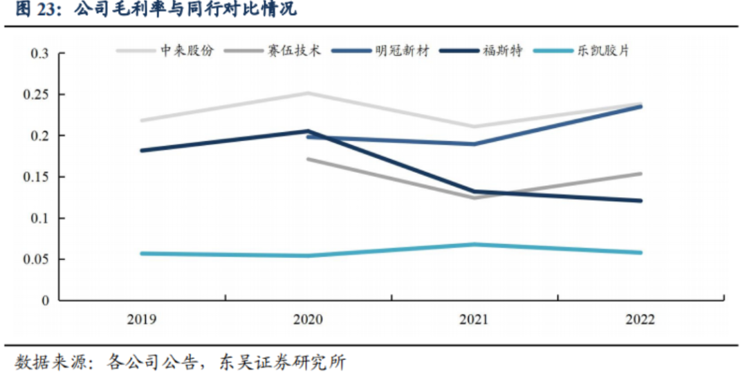 涂覆型背板实现有效降本,毛利率水平同行业领先。同行多生产复合型背板,受PVDF 等原材料价格影响大,成本居高不下;而公司研发出涂覆型背板,无需使用氟膜、胶黏剂等,成本相对复合型背板更低,因此公司毛利率水平始终处于同行业领先位置,盈利空间进一步打开。