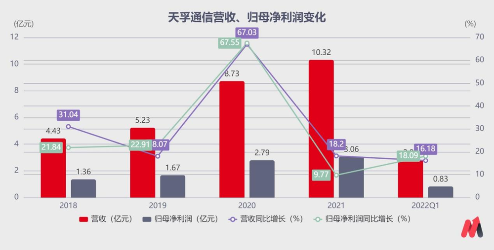 虽说天孚通信的产品品类拓展有助于业绩增长,但从公司近几年的业绩表现来看,公司的业绩增长与下游需求释放相关性更高。