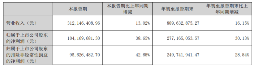 天孚通信2022年前三季度实现营收8.9亿元,同比增长16.2%;实现归母净利润2.77亿元,同比增长30.1%;每股收益为0.71元。其中第三季度营收3.12亿元,同比增长13.02%;实现归母净利润1.04亿元,同比增长30.1%。