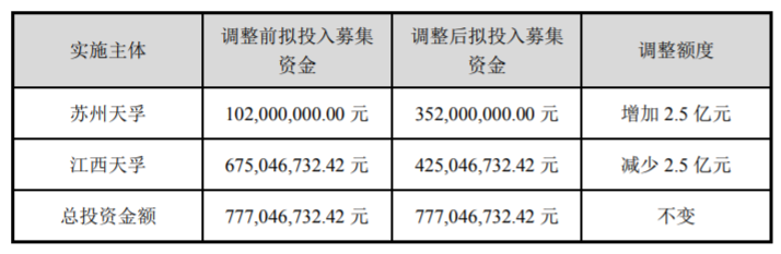 日,同时调整公司和江西天孚科技有限公司两个项目实施主体分别的投资金额,项目的内容和总投资金额不变,独立董事对该事项发表了同意的独立意见。