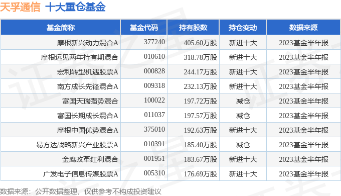 持有天孚通信最多的基金为摩根新兴动力混合A,目前规模为52.44亿元,最新净值4.3474(10月19日),较上一交易日下跌1.7%,近一年下跌25.47%。该基金现任基金经理为杜猛。