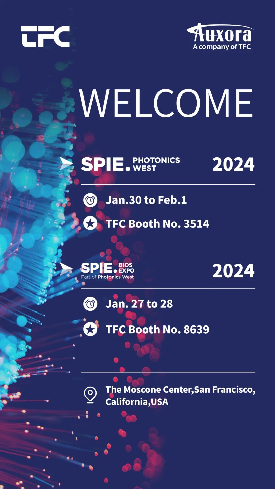 2024年1月27日- 2月1日,2024年西部光电展览会(SPIE Photonics West 2024 )将在美国加利福尼亚州旧金山莫斯康展览中心盛大举办。业界领先的光器件整体解决?案提供商和先进光学封装制造服务商天孚通信(TFC)将联合子公司北极光电(Auxora)携最新产品和方案精彩亮相本届展会。