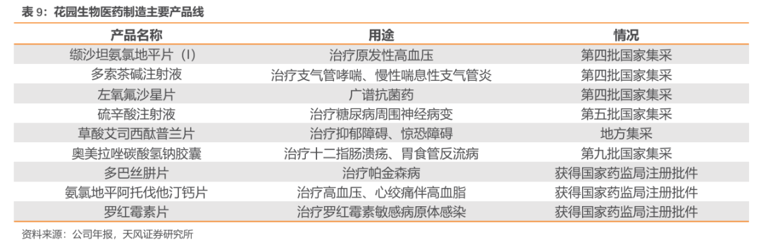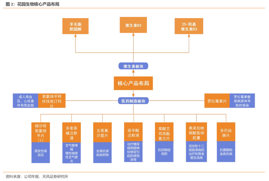 明晰高技术壁垒制剂、顺应医改政策及市场需求,加速高端仿制药研发和产品布局。2011年,花园生物完成了对花园药业100%股权的收购,使其成为全资子公司。通过此次收购,花园生物在原有维生素D3产业链的基础上,进一步拓展至心血管、神经系统等慢性疾病领域。
