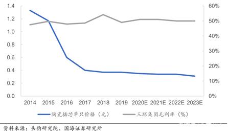 举例来说,陶瓷粉体是电子陶瓷行业卡脖子的存在。国海证券研报显示,在2015年实现陶瓷粉体原料自制后,三环集团于2016年大打“降价牌”,光纤陶瓷插芯市场价格由1.5元/只下降至不到0.4元/只,其市场份额也由此提升至70%,成为全球老大。