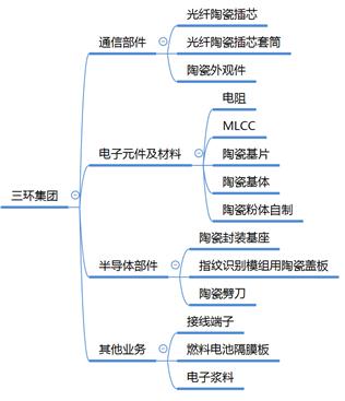 成立于1970年的三环集团,始终专注于电子陶瓷领域,并且从横向和纵向两方面拓展业务。从最初从事陶瓷基体和固定电阻器,到目前覆盖通信部件、电子元件及材料、半导体部件以及接线端子、燃料电池隔膜板等其他业务。