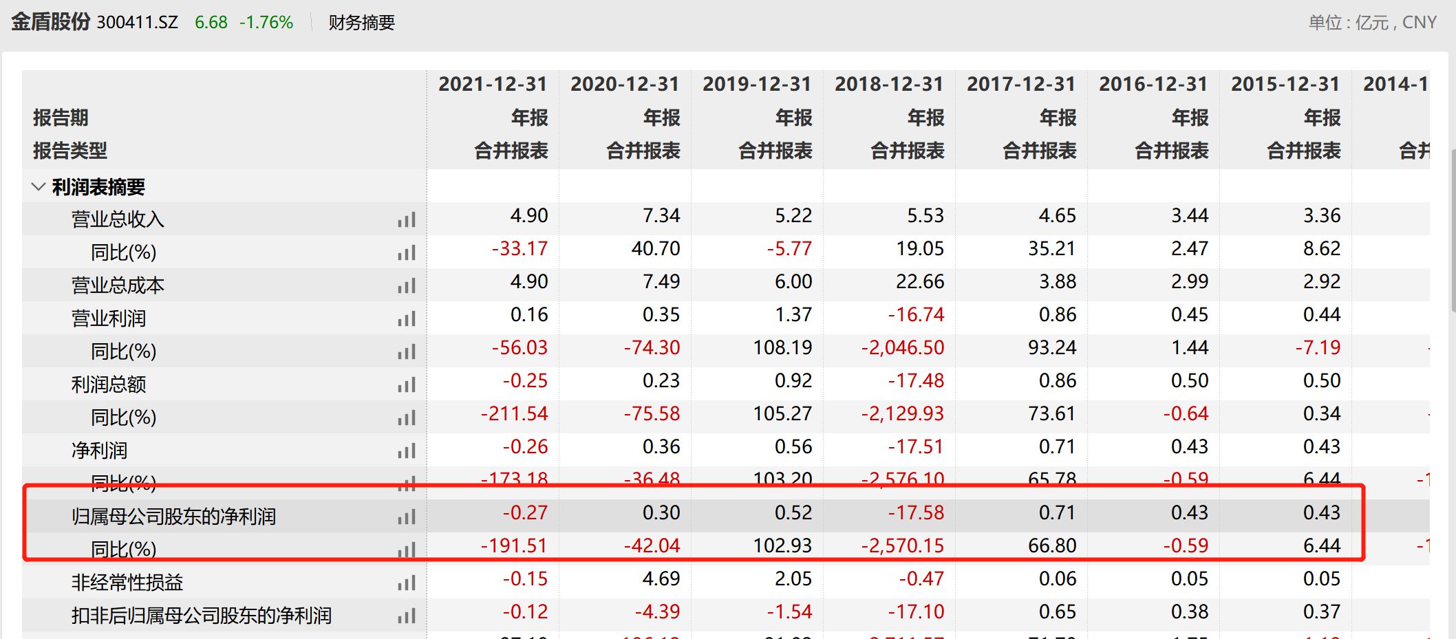 上市以来,金盾股份盈利能力并不突出,2015年至2021年公司累计净亏损15.46亿元,其中2018年亏损17.58亿元。