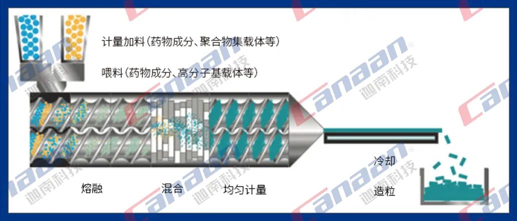 迦南科技于2016年在南京成立了“药学研究院”,帮助制药企业进行一致性评价、制药工艺优化、药品研发等技术服务。为了更好的满足不同客户的需求,迦南科技通过资源整合、战略合作,共同开发出了热熔挤出机。