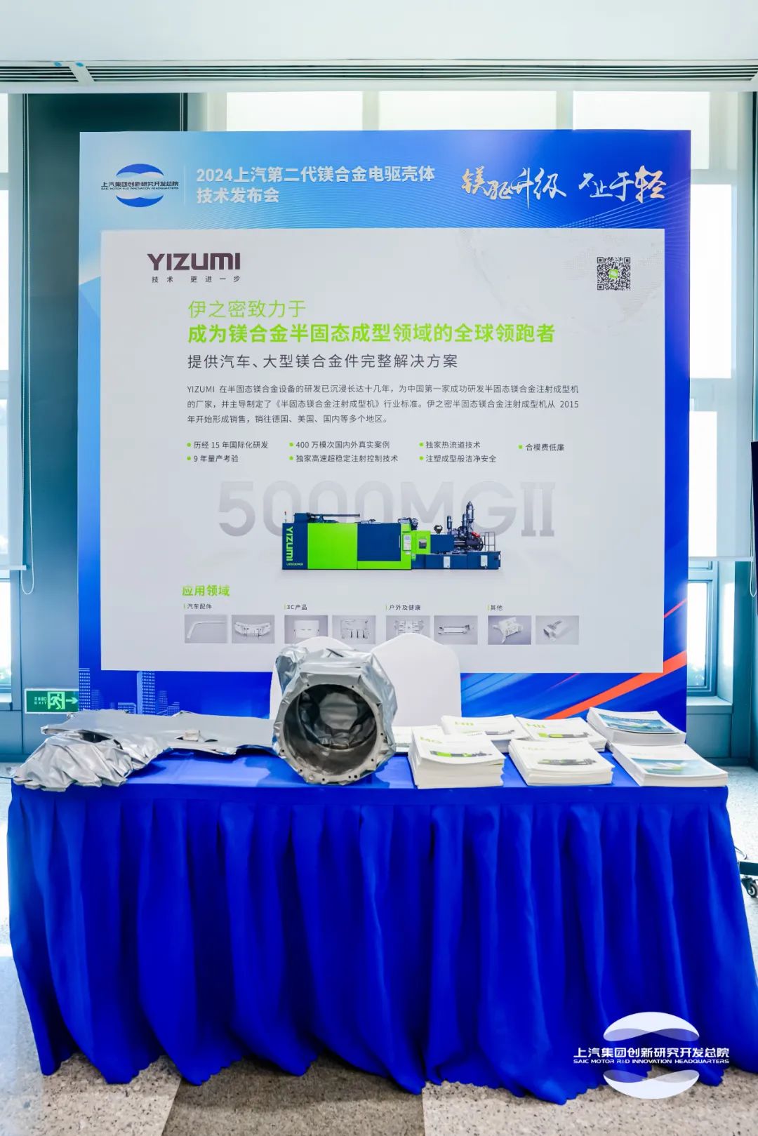 伊之密3200T、2000T半固态镁合金注射成型机因其全球领先的综合了锁模力、压射能力、熔供料能力三大关键参数的卓著性能,适用于上汽第二代镁合金电驱壳体的制造,肩负量产重任,受邀在技术发布会上分享了《镁合金汽车零件半固态成型工艺》。