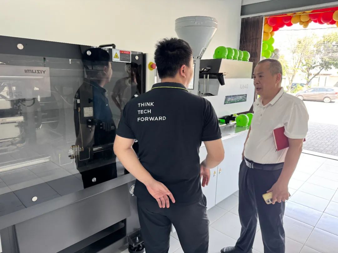 在开放日活动现场,伊之密展示了多款重磅新产品,包括A6系列高端智能注塑机、SPET-D系列日用收纳专用机以及TP5系列精密节能注塑机。这些产品代表了伊之密在注塑机领域的最新技术成果,同时也展现了公司对印尼市场客户需求的精准把握。