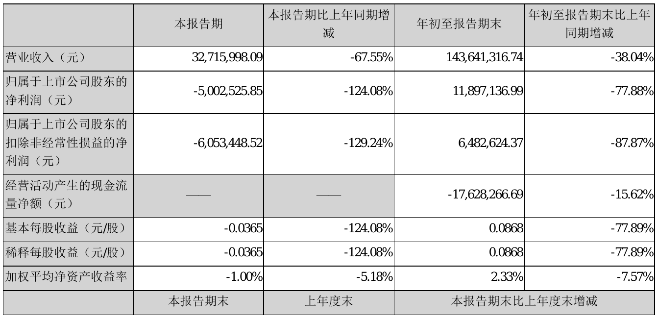 10月25日,南华仪器(300417)近日发布2021年前三季度报告,报告期内营业收入143,641,316.74元,同比减少38.04%;净利11,897,136.99元,同比净利减少77.88%。