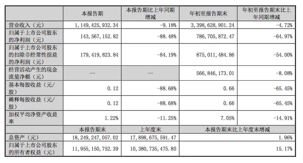而且据财报披露,今年前三季度,公司归属于上市公司股东的净利润变动主要集中在投资方面的损益,其中投资收益同比减少17.6亿,公允价值变动收益同比减少3.6亿,不考虑投资方面损益的经营性净利润同比增长4.6亿,涨幅为175.31%。