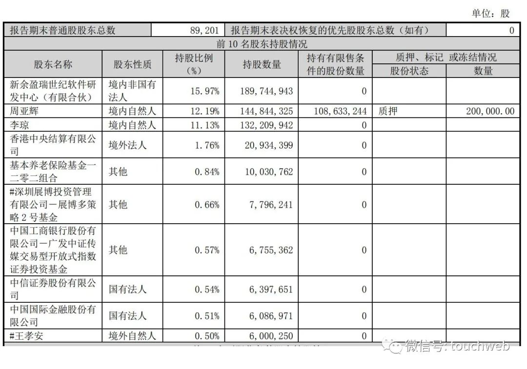 截至2023年3月31日,新余盈瑞世纪软件研发中心(有限合伙)持股为15.97%,周亚辉持股12.19%,李琼持股11.13%,香港中央结算有限公司持股为1.76%,基本养老保险基金一二零二组合持股为0.84%;