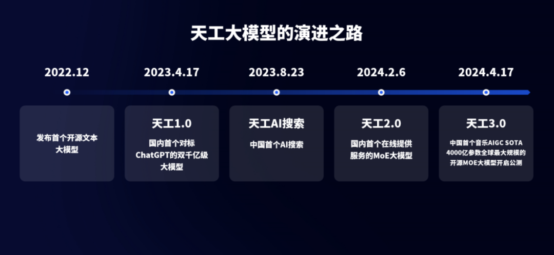 2023年不管多难,对这个判断没有动摇并不断投入研发,从天工1.0到发布天工智能助手,再到2024年2月发布天工2.0以及4月中旬开启公测的天工3.0,整体上公司的资源和关注度完全转型到这个方向。