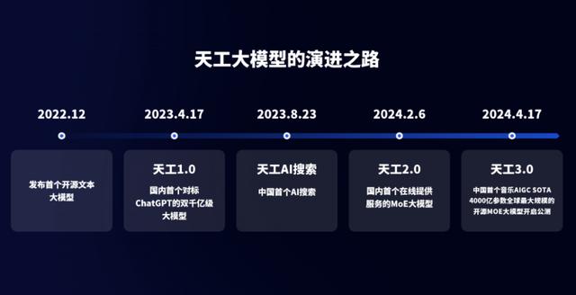 2024年以来,天工大模型继续迭代升级。同年2月,昆仑万维正式发布采用业内顶尖MoE(Mixture-of-Experts)专家混合模型架构的“天工2.0”大语言模型,相较于此前版本,“天工2.0”应对复杂任务的能力更强、模型响应速度更快、训练及推理效率更高、可扩展性更强。