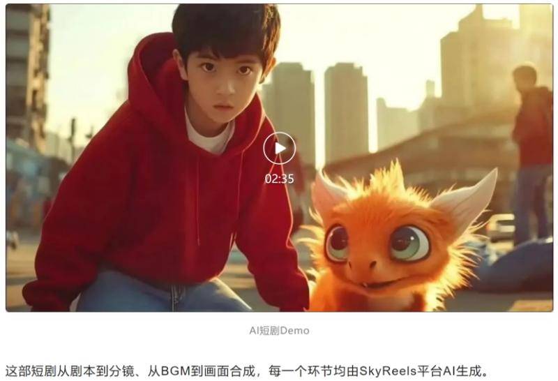昆仑万维微信公众号上,发布了一个2分多钟的AI短剧,并称这部短剧从剧本到分镜、从BGM到画面合成,每一个环节均由SkyReels平台AI生成。