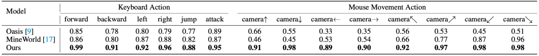 在控制性能上,Matrix-Game可实现:“运动”“攻击”等动作高达 90%+准确率;细粒度视角控制下依然保持高精度响应。