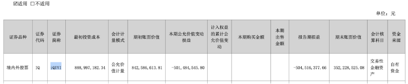 2024年年报显示,公司持有的证券资产为iQIYI (IQ.US)和映宇宙(03700.HK)。其中,由于爱奇艺(iQIYI)股价去年累计跌幅超过58%,公司产生的公允价值变动损失为5.01亿元。2025年Q1,公司公允价值变动收益为-4.91亿元,同比扩大了330%。