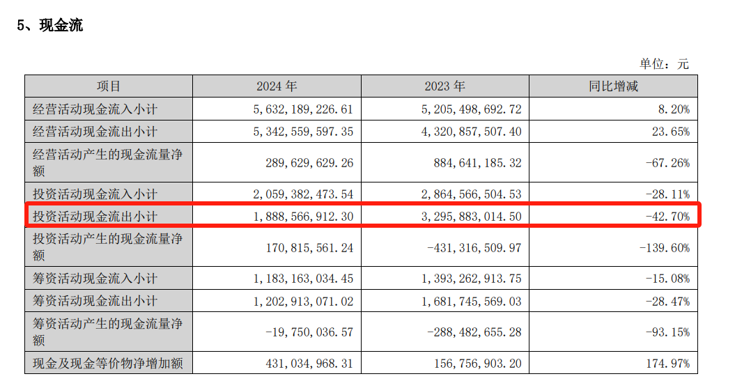 据2024年年报,昆仑万维持有的证券资产为爱奇艺和映宇宙。其中,由于爱奇艺股价下跌,公司产生的公允价值变动损失为5.01亿元。更重要的是,上述损失还是发生在昆仑万维主动收缩投资规模的背景下。2024年,昆仑万维的投资活动现金流出较上年同期减少42.7%。