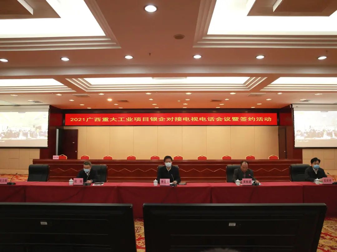 近日,2021年广西重大工业项目银企对接电视电话会议暨签约活动以视频会的形式在自治区工业和信息化厅主会场以及全区13个分会场同时举行。自治区副主席费志荣出席签约活动并发表讲话。